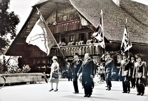 Fahnenweihe 1962 mit den Fahnenpaten Berta Boschung und Alois Zosso